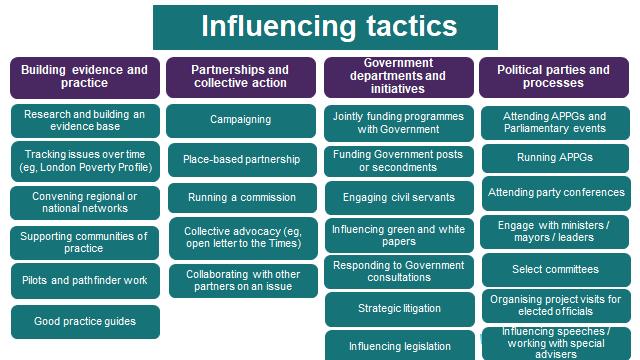 This blog summarises the different approaches to influencing policy that came out through the research and the rich variety of tactics being used by trusts and foundations to innovate and creatively influence policy.